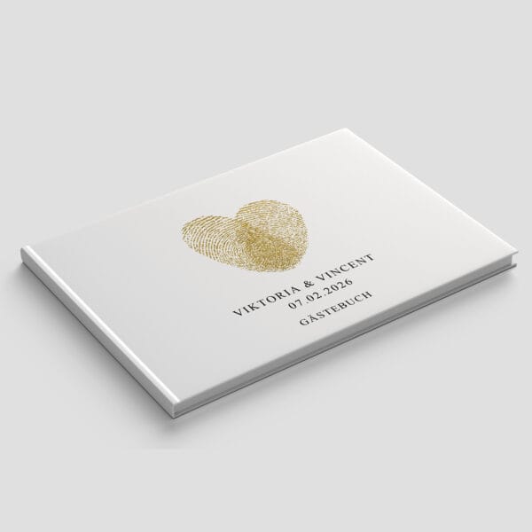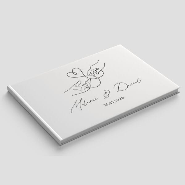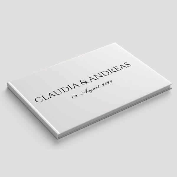 Gästebuch Hochzeit in einem eleganten Hardcover mit personalisiertem Einband ist eine einzigartige Möglichkeit, Erinnerungen an den Hochzeitstag festzuhalten.