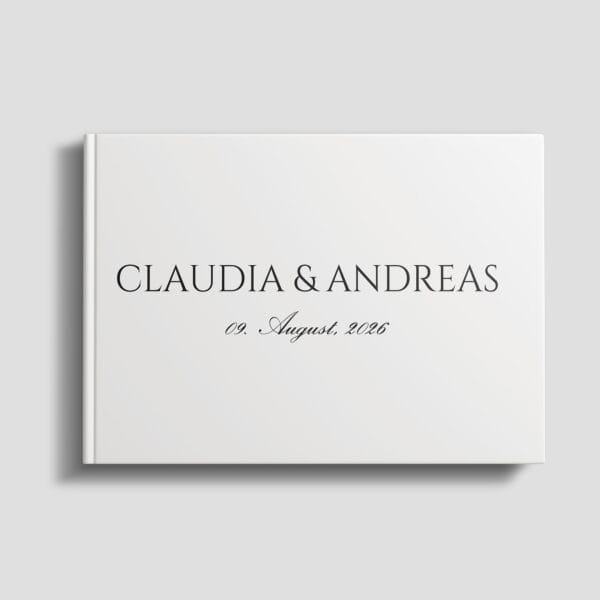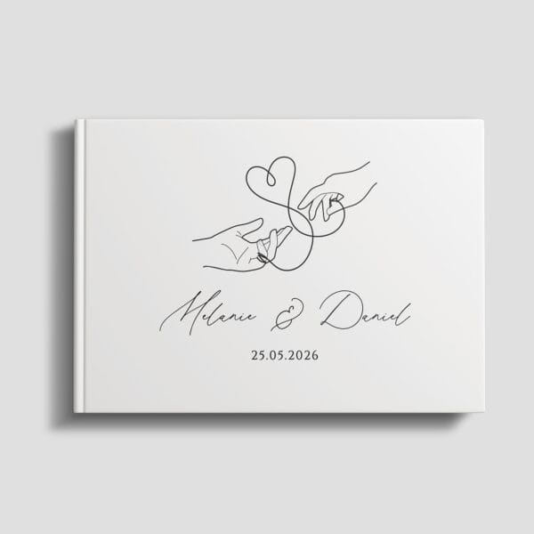 Gästebuch Hochzeit in einem eleganten Hardcover mit personalisiertem Einband ist eine einzigartige Möglichkeit, Erinnerungen an den Hochzeitstag festzuhalten.