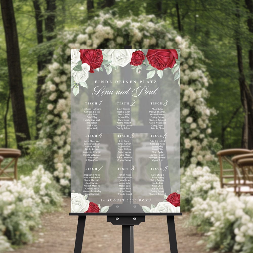 Der Sitzplan Hochzeit ist die ideale Lösung für Paare, die ihrer Zeremonie einen einzigartigen, luxuriösen Touch verleihen möchten.