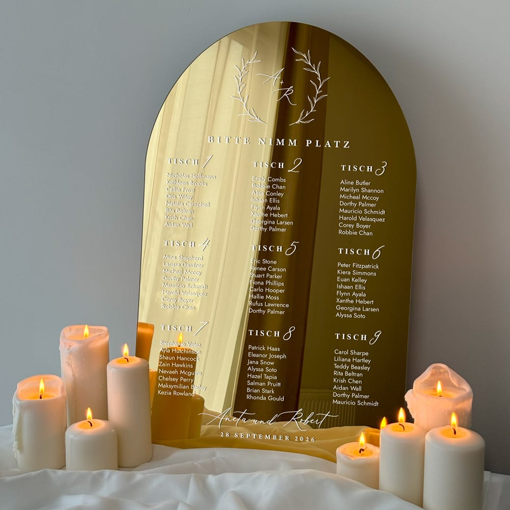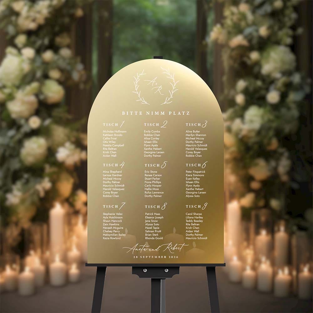 Der Tischplan Hochzeit ist die ideale Lösung für Paare, die ihrer Zeremonie einen einzigartigen, luxuriösen Touch verleihen möchten.
