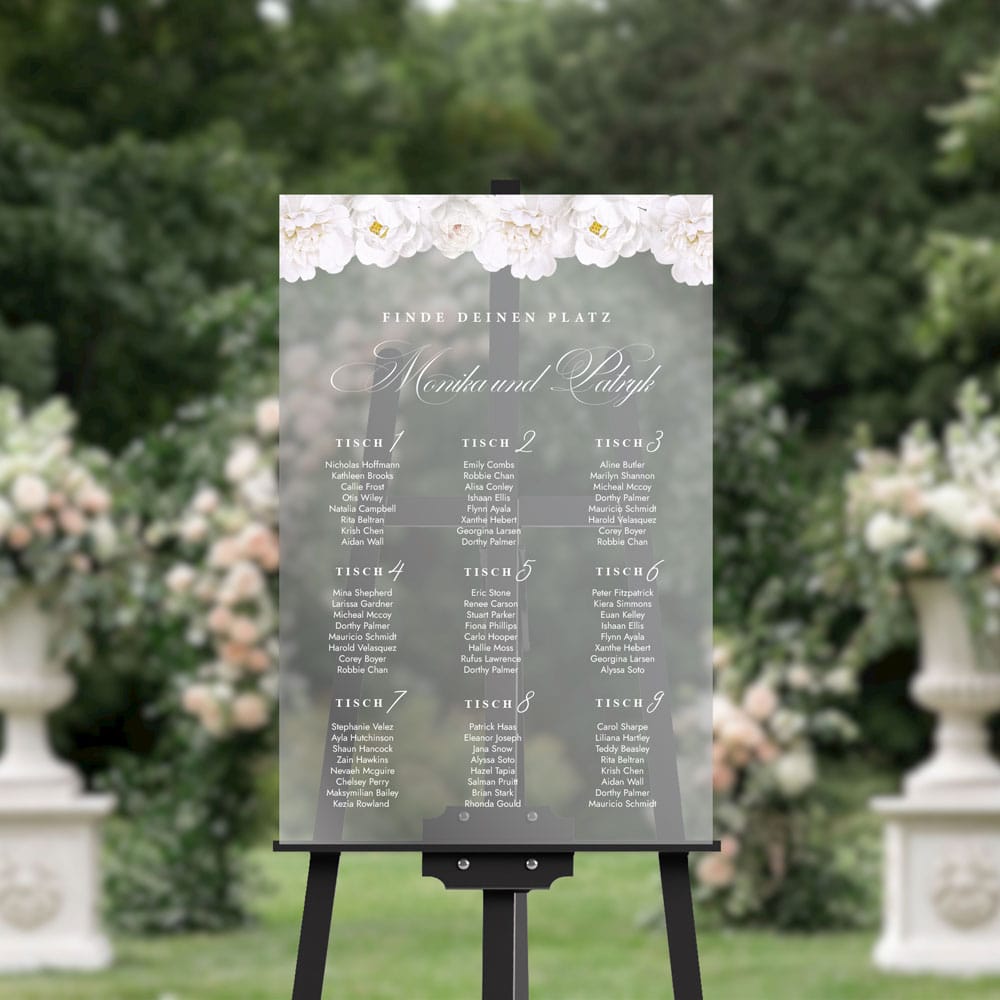 Der Tischplan Hochzeit ist die ideale Lösung für Paare, die ihrer Zeremonie einen einzigartigen, luxuriösen Touch verleihen möchten.