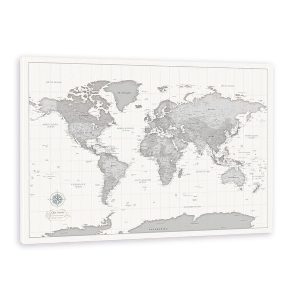 Weltkarte Pinnwand – Grau
