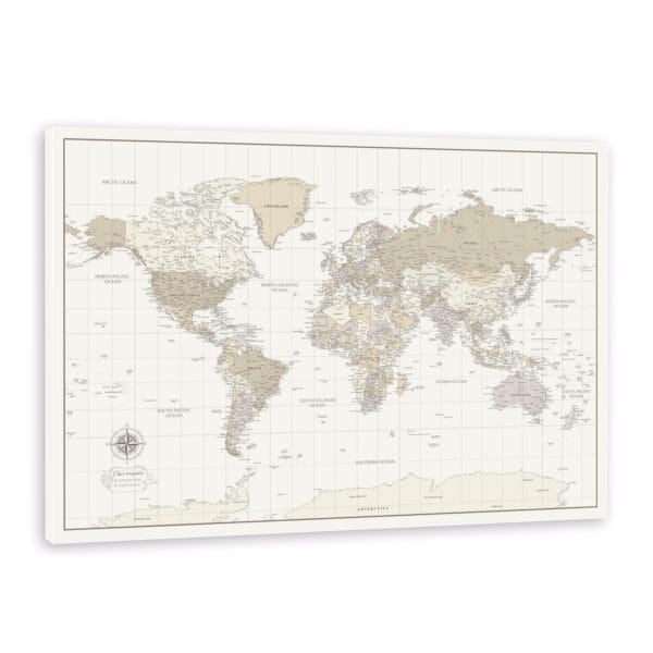 Pinnwand Weltkarte Leinwand – Pastell Beige